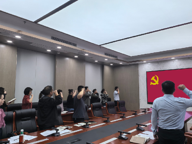 全体党员面对党旗重温入党誓词,10月过“政治生日”的党员领誓并忆初心。陈军同志领学习近平总书记在庆祝中华人民共和国成立76周年招待会上的重要讲话;其他支委分别领学习近平总书记重要文章《中华民族共同体的形成和发展是人心所向、大势所趋、历史必然》《纵深推进全国统一大市场建设》;习近平总书记在中共中央政治局第二十二次集体学习的重要讲话、在听取新疆维吾尔自治区党委和政府工作汇报时的重要讲话;中共中央政治局会议精神;《中共湖北省委深入贯彻中央八项规定精神学习教育工作专班 中共湖北省纪委办公厅关于6起违反中央八项规定精神典型问题的通报》及其他反面典型通报;《中国共产党章程》《中国共产党纪律处分条例》第九章。全体党员还在支部书记的带领下专题学习了《习近平谈治国理政》第五卷——《高举中国特色社会主义伟大旗帜,为全面建设社会主义现代化国家而团结奋斗》。